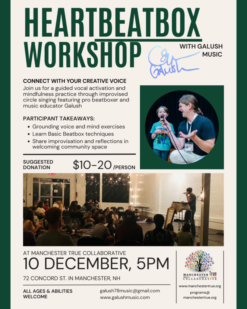 Join MTC and local teaching artist Jessi Galusha on Wednesday, December 10th from 5pm to 6pm for HeartBeatBox.