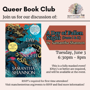 June’s book pick is A Day of Fallen Night by Samantha Shannon! We will be discussing parts I and II at our June meeting, and the entire book at our July meeting.